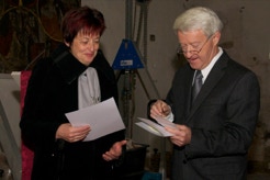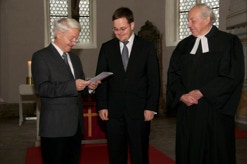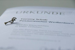 Am Sonntag, den 04.11.2012 fand in unserer Kirche ein festlicher Gottesdienst zur Kirchweih, ausgestaltet von unserem Posaunenchor, statt. Innerhalb dieses Gottesdienstes wurden 2 Mitglieder unseres Chores für langjährige Dienste mit der Bläsernadel der Sächsischen Posaunenmission ausgezeichnet. Heidi bläst bereits seit 40 Jahren in unserem Chor und Tommy ist nun auch schon 10 Jahre dabei. Wie schnell doch die Zeit vergeht...