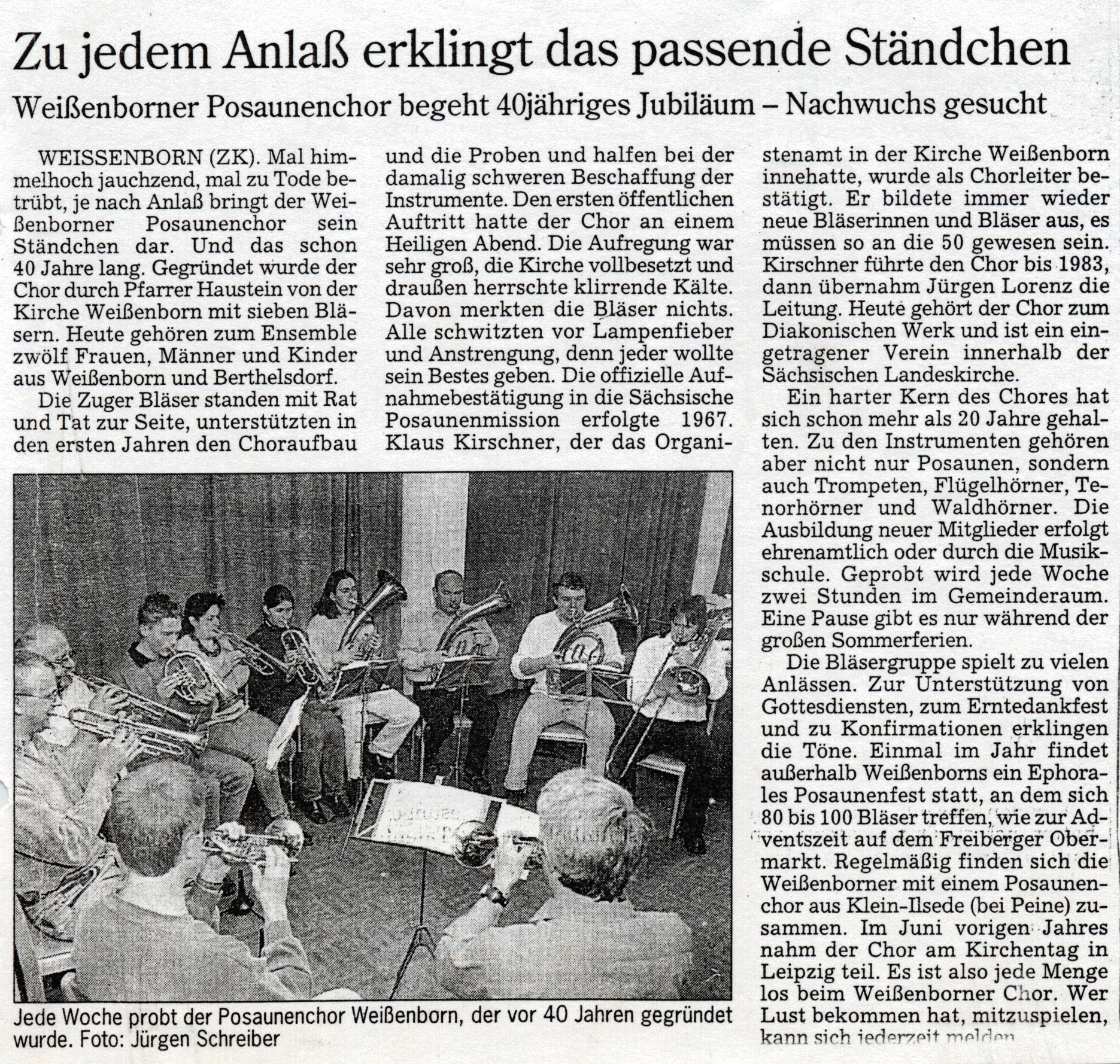 40-jähriges Jubiläum des Weißenborner Posaunenchores - Freie Presse 1997