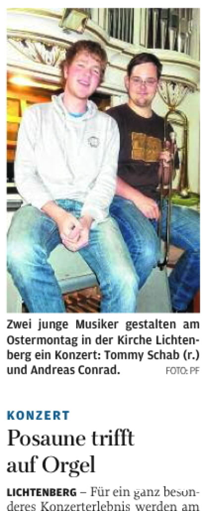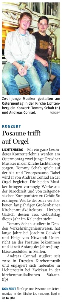 Posaune trifft auf Orgel - Konzertankündigung - Freie Presse 28.03.2013