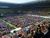 Am Freitag Nachmittag zur Eröffnung auf dem Neumarkt gings hinsichtlich Organisation und Technik noch etwas holprig los. Dazu kam noch, dass wir (Instrumente, Noten und Bläser) so richtig von einem Regenschauer durchnässt wurden. Aber das wurde bei den weiteren Events deutlich besser. Highlights des Wochenendes waren zweifelsfrei die Abendserenade zu beiden Seiten der Elbe und der Abschlussgottesdienst im Dynamo-Stadion, aber auch die abendlichen Konzerte am Freitag und Samstag, die wir als Zuhörer besuchen konnten. Gänsehautmomente, unglaublich! Ja, es gibt sie noch. Schön auch, dass es uns trotz der vielen Menschen immer wieder gelungen ist als Chor zusammen zu sein.